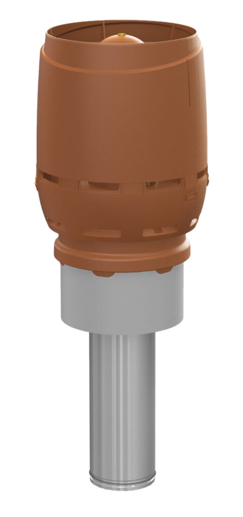 Käyttökohteet: Pyöreäharjaiset (tiilikuvioiset) muotopeltikatteet. Tiilikuvion pituus ≥ 350 mm, korkeus 39 mm. Läpivienti on muotoiltava, ja sen alapuolelle istutettu kumitiiviste varmistaa vedenpitävyyden. Käytetään VILPEn P-sarjan ⌀ 110–125:mm tuuletus- ja poistoputkien sekä huippuimureiden kanssa. Poikkeuksena läpiviennin kanssa sopii käytettäväksi myös 160 mm:n eristämätön tuuletusputki sekä 160 mm:n P-sarjan Intake-tuloputki.